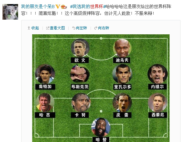 油菜花的网友们评选出了超级无敌假摔11人阵容。咦,门将位置好像有什么怪怪的东西混进来了。难道是让哈登用大胡子和眼神防守么?黑妹觉得他会抄起球一路运到对方禁区,这样真的大丈夫么。