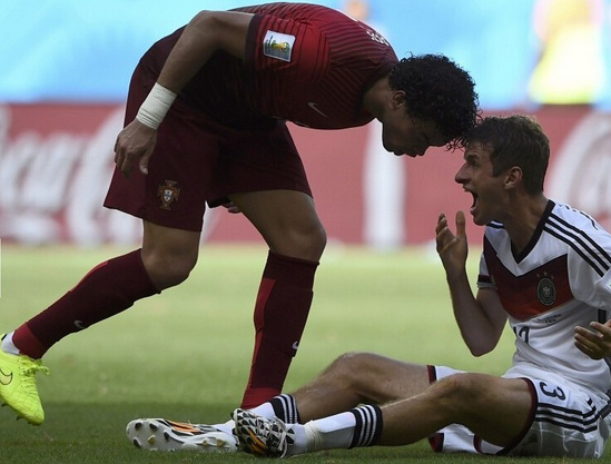 作为皇马的主力后卫,葡萄牙人佩佩拥有着“武僧”这一外号,而这外号全凭他在俱乐部比赛时经常上演“武林功夫”而得来,来到巴西以后,“武僧”佩佩在首场比赛就使出了他的看家本领。在葡萄牙与德国队的比赛进行到第37分钟,在德国队的穆勒摔倒后,认为穆勒假摔并因此情绪激动的佩佩用自己的头顶住穆勒,这样的行为直接为他招来了一张红牌。